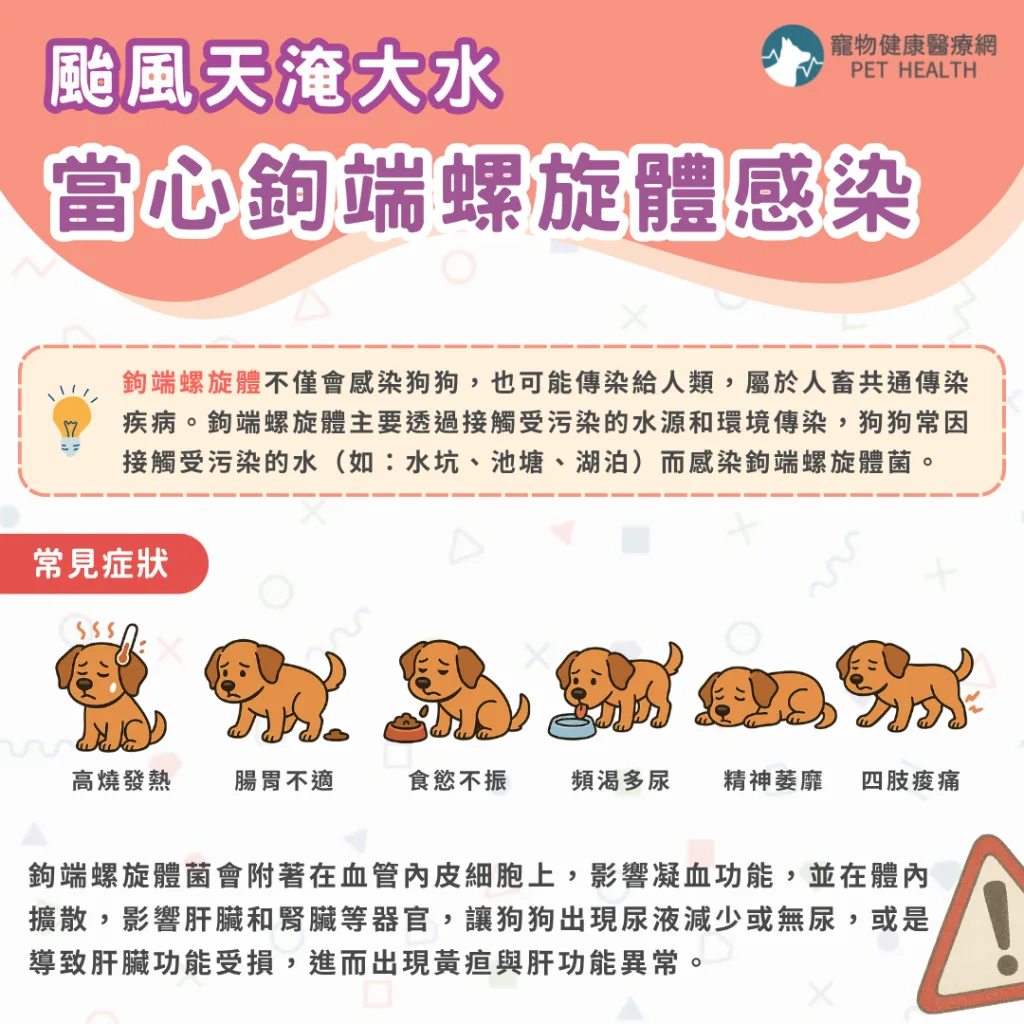 鉤端螺旋體症是一種人畜共通的疾病,可能由哺乳動物傳染給人類。因此,處理受感染狗狗的尿液時應戴上手套,並徹底洗手。